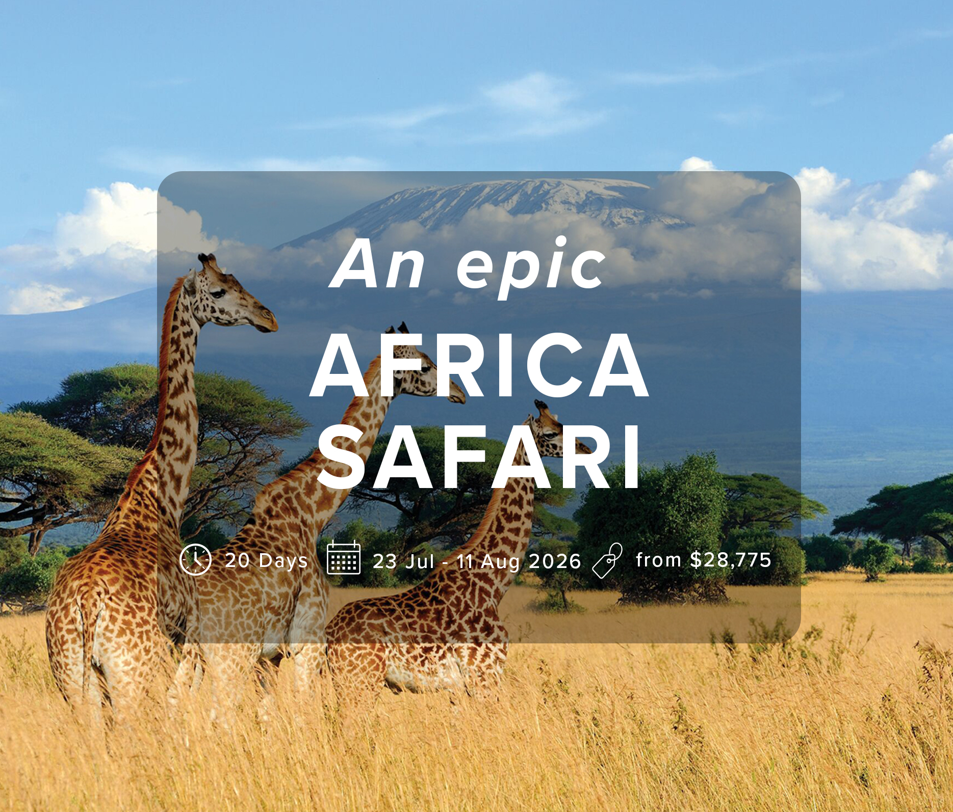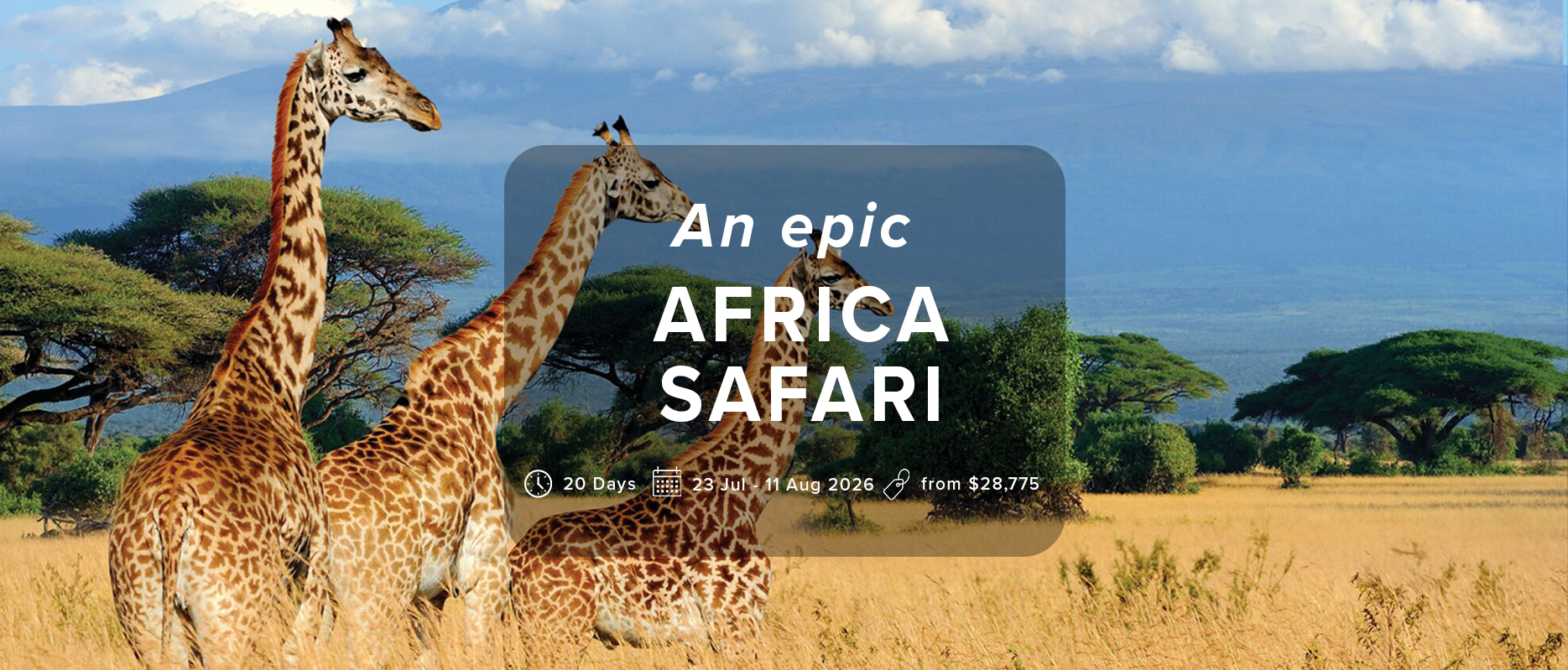 Discover the breathtaking beauty of Cape Town, marvel at the mighty Victoria Falls, and enjoy memorable wildlife encounters in Chobe, as well as in Kenya and Tanzania’s world-renowned national parks. Spaces are limited to an intimate group of just 22 guests, so be sure to secure your spot soon on this magnificent adventure.