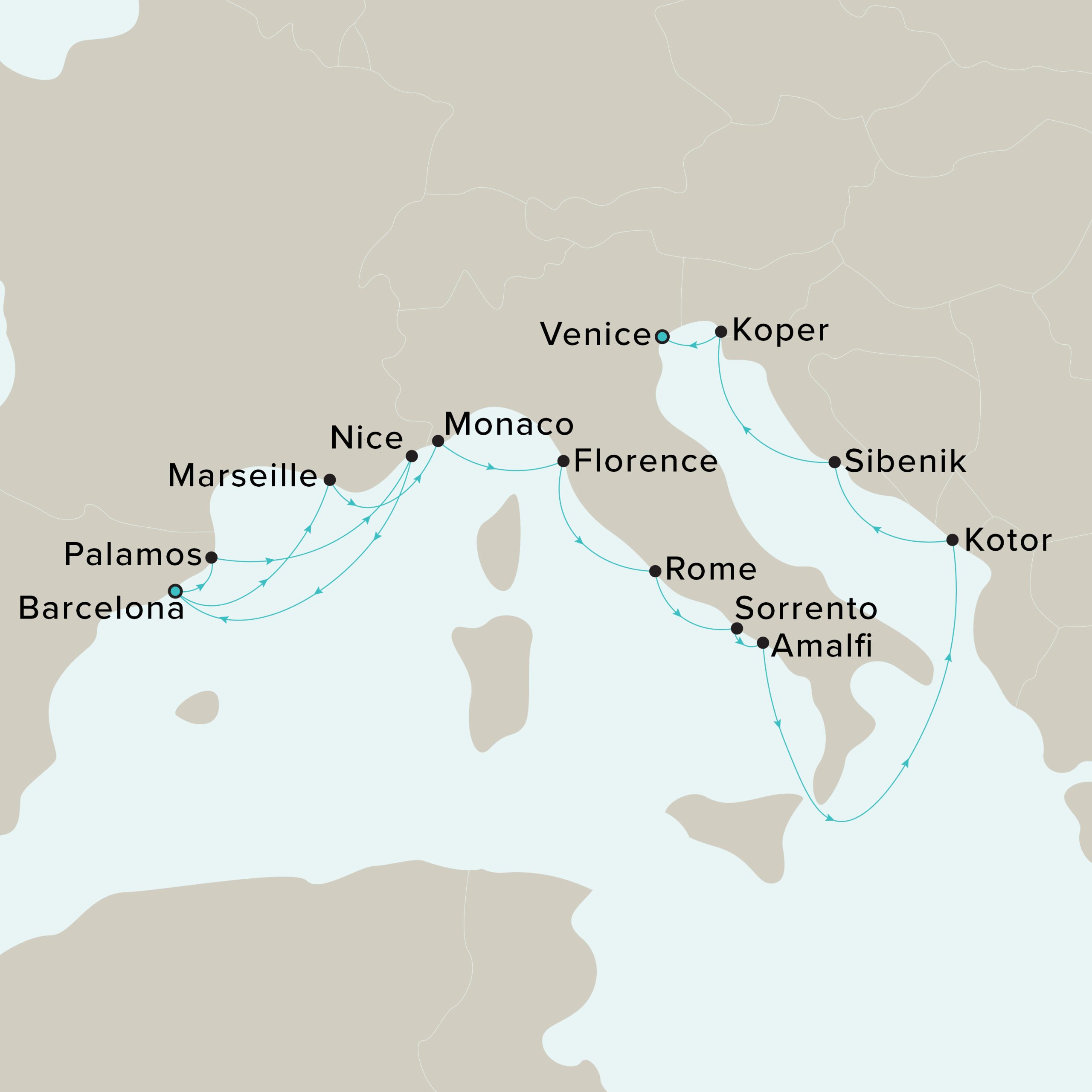 • Overnights in port in Nice, Barcelona and Mestre