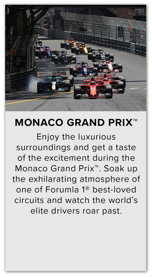 EXPERIENCE THE THRILL OF THE MONACO GRAND PRIX™ WITH RACE-DAY ACCESS INCLUDED