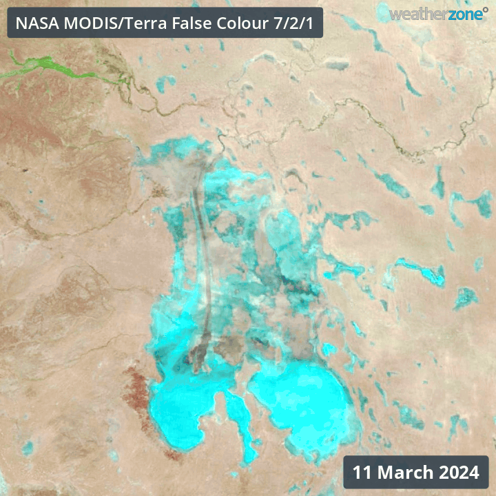 At this stage, the current event does not appear to be significant enough to fill the lake entirely, however rain and storms are forecast for the weekend in some of the right areas such as Birdsville in southwest Qld, so the chances appear high that at least a portion of the lake will retain water for a while.